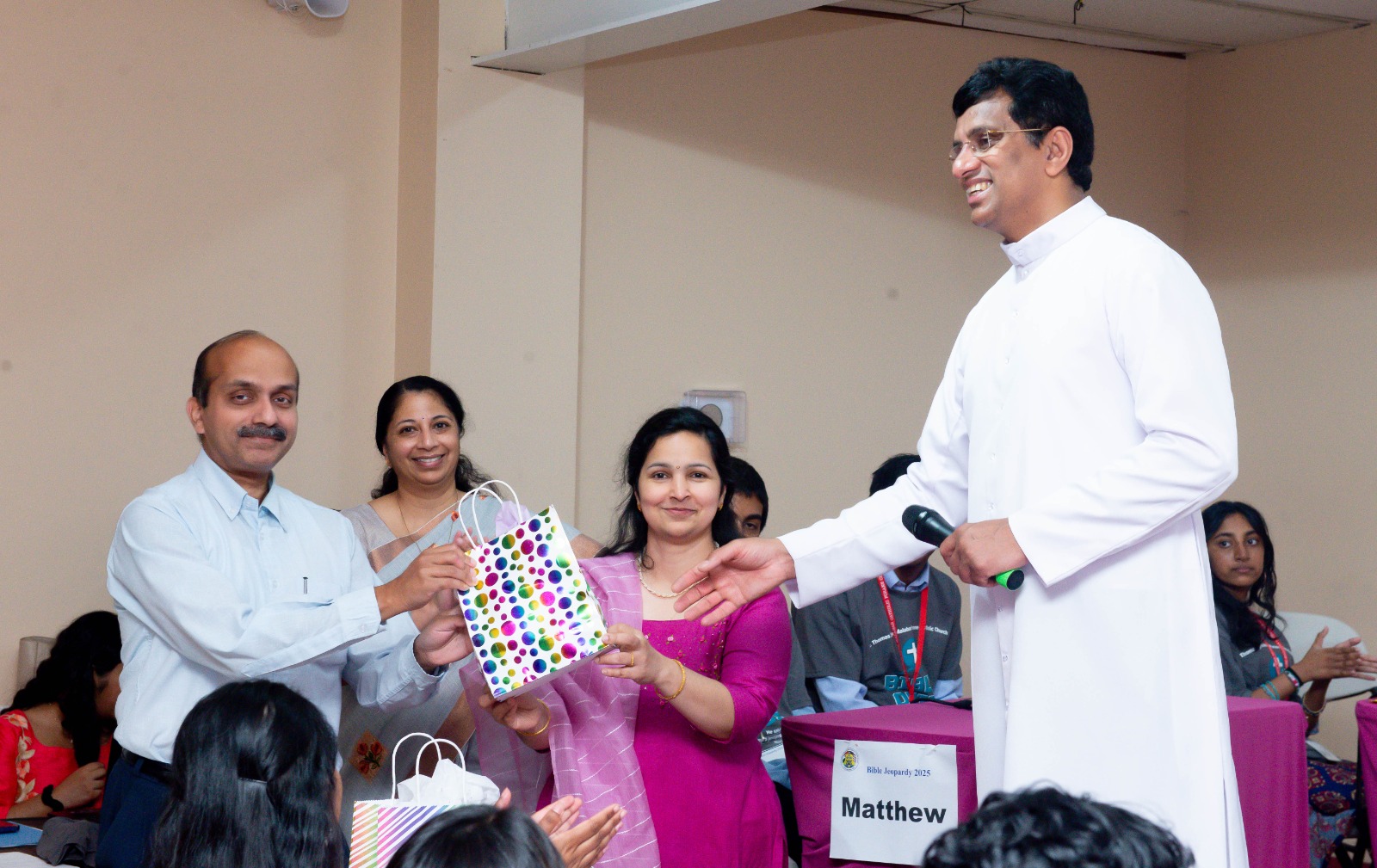 ഓരോ ചോദ്യറൗണ്ട് കഴിയുമ്പോഴും സദസ്യര്ക്കുള്ള ചോദ്യങ്ങളും സമ്മാനങ്ങളും ഉണ്ടായിരുന്നതു കാണികളില് ആവേശമുണര്ത്തി. മതാധ്യാപകരായ ലീനാ ജോസഫ്, എബന് ബിജു എന്നിവരായിരുന്നു ക്വിസ് മാസ്റ്റര്മാര്.