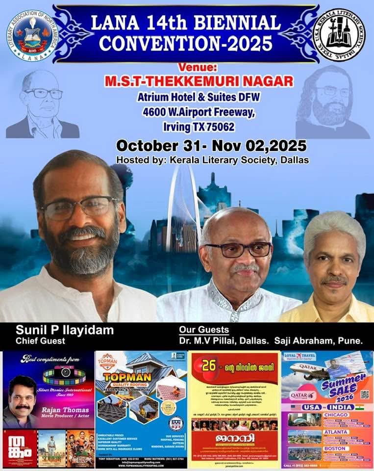 ലിറ്റററി അസോസ്സിയേഷൻ ഓഫ് നോർത്ത് അമേരിക്ക (ലാന) - യുടെ പ്രസിഡണ്ടും എഴുത്തുകാരനുമായ അമ്പഴക്കാട്ട് ശങ്കരന്റെ “ഹൃദയപക്ഷ ചിന്തകൾ” (ലേഖന സമാഹാരം) എന്ന ഏറ്റവും പുതിയ പുസ്തകത്തിന്റെ കവർ പ്രകാശനം പ്രശസ്ത കവി സെബാസ്റ്റ്യൻ നിർവഹിച്ചു. സുപ്രസിദ്ധ നോവലിസ്റ്റും കഥാകാരനുമായ ഇ. സന്തോഷ് കുമാർ അവതാരിക എഴുതിയ ഈ പുസ്തകം ഓക്ടോബർ 31 - നവമ്പർ 1, 2 എന്നീ തിയ്യതികളിലായി നടക്കുന്ന ലിറ്റററി അസോസ്സിയേഷൻ ഓഫ് നോർത്ത് അമേരിക്ക (ലാന) - യുടെ പതിനാലാം ദ്വൈവാർഷിക സമ്മേളനത്തിൽ വെച്ച് എഴുത്തുകാരനും പ്രഭാഷകനുമായ ശ്രീ സുനിൽ പി. ഇളയിടം പ്രകാശനം ചെയ്യും.
