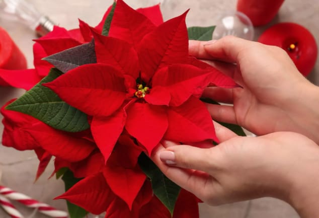 ക്രിസ്മസിന് ഏറ്റവും പ്രചാരമുള്ള ചുവന്ന സസ്യം പോയിൻസെറ്റിയ (യൂഫോർബിയ പുൾചെറിമ) ആണ്. വിഷുവിനു കൊന്നപ്പൂക്കൾ ഹിന്ദുപാരമ്പര്യങ്ങൾക്കു എത്ര പ്രധാനമാകുമോ അതുപോലെ ക്രിസ്തുമസിന്റെ ഏറ്ററ്വും പ്രധാനപ്പെട്ട അണിയിച്ചൊരുക്കലാണ് പോയിൻസെറ്റിയ. പോയിൻസെറ്റിയയുടെ വർണ്ണാഭമായ ചുവപ്പ് ഭാഗങ്ങൾ പൂക്കളല്ല, മറിച്ച് ബ്രാക്റ്റുകൾ എന്ന് വിളിക്കപ്പെടുന്ന പരിഷ്കരിച്ച ഇലകളാണ്; യഥാർത്ഥ ചെറിയ, മഞ്ഞ പൂക്കൾ (സയാത്തിയ) ഈ ഊർജ്ജസ്വലമായ ബ്രാക്റ്റുകളുടെ മധ്യഭാഗത്ത് കൂട്ടമായി കാണപ്പെടുന്നു. അതിനാൽ, നമ്മൾ കാണുന്ന ആകർഷകമായ ഭാഗങ്ങൾ പ്രത്യേക ഇലകളാണ്, അവ യഥാർത്ഥ ചെറിയ പൂക്കളിലേക്ക് പരാഗണകാരികളെ ആകർഷിക്കുന്നു.