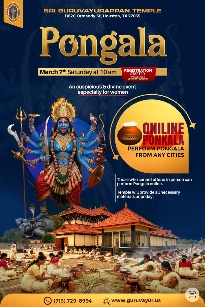 ഹ്യൂസ്റ്റൺ, ടെക്സസ് – ഭക്തിയുടെ ജ്വാല ജ്വലിക്കുന്ന ഭക്തിയോടെയും ആത്മീയ ആവേശത്തോടെയും, ഹ്യൂസ്റ്റണിലെ ശ്രീ ഗുരുവായൂരപ്പൻ ക്ഷേത്രം 2026 മാർച്ച് 7 ന് രാവിലെ 10:00 മണിക്ക് ആരംഭിക്കുന്ന പൊങ്കാലയാഘോഷത്തിനായി ക്ഷേത്രാങ്കണം ഒരുങ്ങിക്കഴിഞ്ഞു ഹ്യൂസ്റ്റണിലും അതിനപ്പുറത്തുമുള്ള എല്ലാ ഭക്തരെയും ഈ ശുഭ മുഹൂർത്തത്തിൽ പങ്കുചേരാനും ഇത് ശരിക്കും അനുഗ്രഹീതവും വിജയകരവുമായ ഒരു പരിപാടിയാക്കാനും ക്ഷേത്ര ഭാരവാഹികൾ സ്നേഹപൂർവ്വം ക്ഷണിക്കുന്നു. ദക്ഷിണേന്ത്യൻ ക്ഷേത്രങ്ങളിൽ വളരെയധികം ആദരിക്കപ്പെടുന്ന ഒരു പാരമ്പര്യമായ പൊങ്കാല ഒരു ആത്മീയ വഴിപാടാണ്. ഇത് ആഴമായ ഭക്തി, ഹൃദയശുദ്ധി, സമൂഹത്തിന്റെ ആത്മാവ് എന്നിവയെ പ്രതീകപ്പെടുത്തുന്നു. ഈ പുണ്യ ചടങ്ങിൽ, ഭക്തർ ഒരു പരമ്പരാഗത തീയിൽ പൊങ്കാലയ (അരി, ശർക്കര, നാളികേരം മറ്റ് ചേരുവകൾ എന്നിവ ഉപയോഗിച്ച് ദൈവ സന്നിധിയിൽ നിന്ന് പകർന്ന അഗ്നിജ്വാലയാൽ നിർമ്മിച്ച നാവിനും മനസ്സിനും മധുരമുള്ള വഴിപാട് തയ്യാറാക്കുന്നു, ഈ വർഷം, ശ്രീ ഗുരുവായൂരപ്പൻ ക്ഷേത്രം പൊങ്കാല നിവേദ്യത്തിന് ആവശ്യമായ എല്ലാ വസ്തുക്കളും നൽകുന്നു, ഇത് ഭക്തർക്ക് യാതൊരു ആശങ്കയുമില്ലാതെ ദിവ്യാനുഭവത്തിൽ പൂർണ്ണമായും മുഴുകാൻ കഴിയുമെന്ന് ഉറപ്പാക്കുന്നു. ഇത് കൃതജ്ഞത, ഭക്തി, സമൃദ്ധിക്കും ക്ഷേമത്തിനും വേണ്ടിയുള്ള പ്രാർത്ഥന എന്നിവയെ പ്രതീകപ്പെടുത്തുന്നു. സ്ത്രീകൾ അവരുടെ കുടുംബങ്ങളുടെ ആരോഗ്യത്തിനും സന്തോഷത്തിനും വേണ്ടി പ്രാർത്ഥിക്കുന്നു. സ്ത്രീകൾ മാത്രമാണ് പൊങ്കാല നടത്തുന്നത്, ഇത് സ്ത്രീ ഭക്തിയുടെയും ഐക്യത്തിന്റെയും ശക്തമായ പ്രതീകമായി മാറുന്നു.\മതപരവും സാംസ്കാരികവുമായ പാരമ്പര്യങ്ങളിൽ സ്ത്രീകളുടെ പ്രധാന പങ്കിനെ ഇത് എടുത്തുകാണിക്കുന്നു.