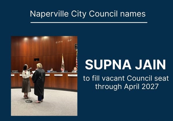 നേപ്പർവിൽ : രണ്ടാം തലമുറ ഇന്ത്യൻ അമേരിക്കക്കാരിയും പരിചയസമ്പന്നയായ അധ്യാപികയുമായ സുപ്ന ജെയിൻ, നേപ്പർവില്ലെ സിറ്റി കൗൺസിലിൽ സേവനമനുഷ്ഠിക്കുന്ന ആദ്യത്തെ വനിതയായി സത്യപ്രതിജ്ഞ ചെയ്തു.