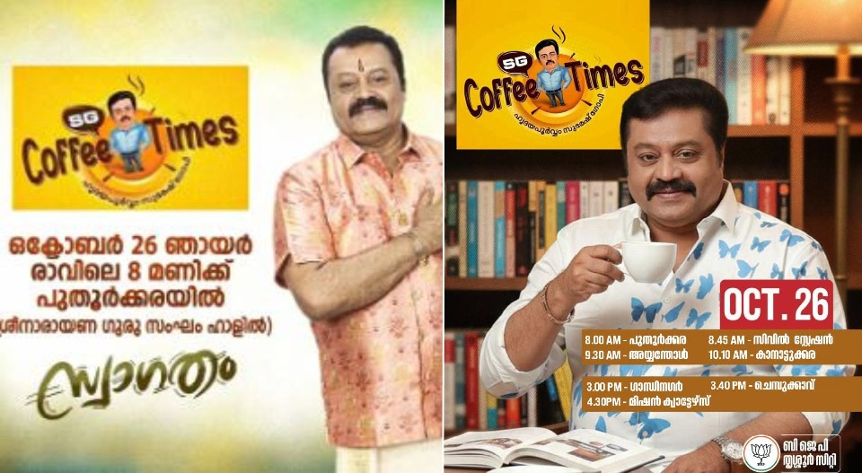 ലോക്സഭാ തെരഞ്ഞെടുപ്പ് പ്രചാരണം ലക്ഷ്യമിട്ടാണ് പുതിയ പരിപാടി. പ്രധാനമന്ത്രി നരേന്ദ്ര മോദി നടത്തിവരുന്ന ‘ചായ് പെ ചർച്ച’യുടെ മാതൃകയിലാണ് സുരേഷ് ഗോപി സ്വന്തം മണ്ഡലത്തിൽ പുതിയ സംവാദ പരുപാടി നടപ്പാക്കാൻ തീരുമാനിച്ചത്. തൃശൂർ അയ്യന്തോൾ, പുതൂർക്കര എന്നിവിടങ്ങളിലാണ് ‘എസ് ജി കോഫി ടൈംസ്’ പരിപാടിയുടെ ആദ്യ സംവാദങ്ങൾ നടക്കുന്നത്.