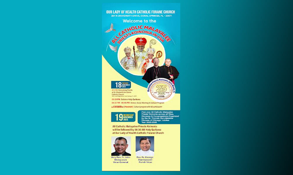 ''കോയ്നോനിയ 2025'' ഒരു വൈദിക സമ്മേളനം മാത്രമല്ല, ഒരു ആത്മീയ പുനര്ജ്ജനത്തിന്റെ വിളംബരവും; ചിക്കാഗോ സീറോ മലബാര് രൂപതയുടെ ജൂബിലി വര്ഷത്തിലെ പുതിയ ദിശാബോധത്തിന് വലിയൊരു പ്രകാശകിരണവുമായി മാറി തീരും.