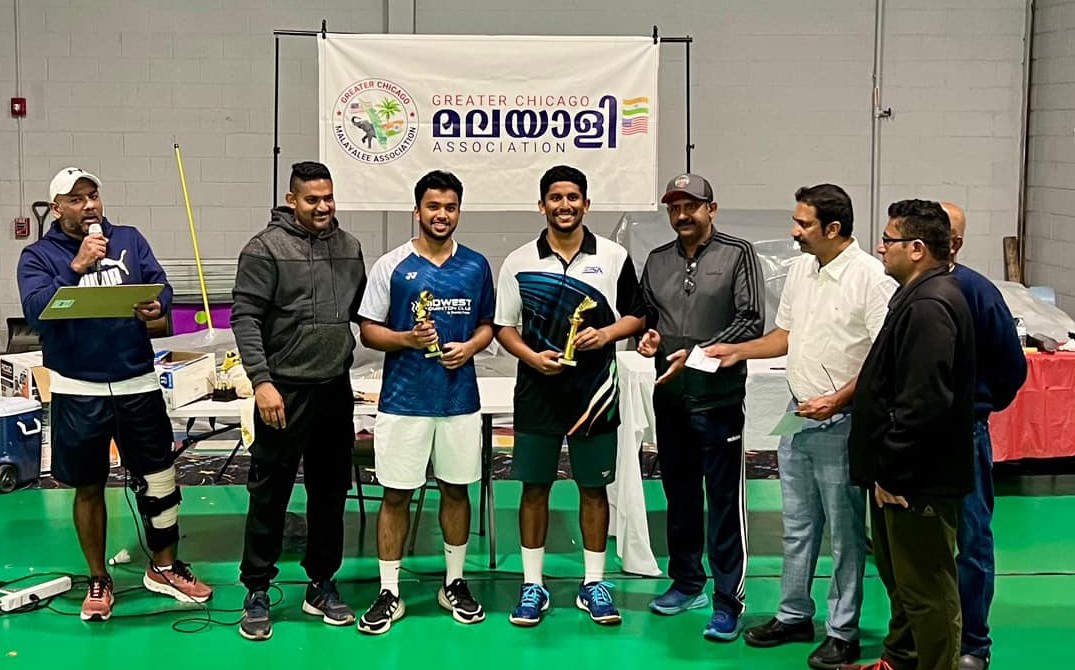 ഗ്രെയ്റ്റർ ചിക്കാഗോ മലയാളീ അസോസിയേഷൻ നടത്തിയ ബാഡ്മിന്റൺ ടൂർണമെന്റിൽ മെൻസ് ഓപ്പൺ വിഭാഗത്തിൽ ജുബിൻ വെട്ടിക്കാട്ട് & ആരോൺ ബ്രിജേഷ് ടീം വിജയികളായി . വിജയ പരാജയങ്ങൾ മിന്നി മറഞ്ഞ ഫൈനൽ മത്സരത്തിൽ ജെറി ജോർജ് & ജോയൽ ടീമിനെ ആണ് പരാജയപ്പെടുത്തിയത് . വരുൺ ഗോപിനാഥ് & മെൽബിൻ തോമസ് , നവീൻ ചെറിയാച്ചൻ & ജിതിൻ ചെറിയാൻ ടീമുകൾ സെക്കൻഡ് റണ്ണർ അപ്പ് ആയി