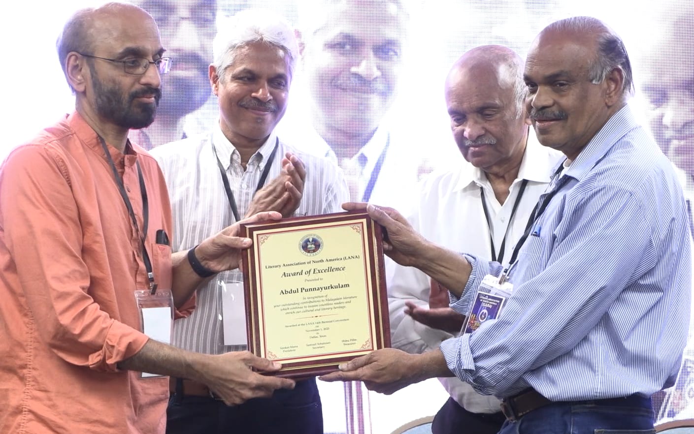 അമേരിക്കൻ മലയാളി സാഹിത്യകാരൻ അബ്ദുൾ പുന്നയൂർക്കുളത്തിനു ലാനയുടെ ആദരം നൽകപ്പെട്ടു. പതിറ്റാണ്ടുകളായി ഇംഗ്ലീഷിലും മലയാളത്തിലും എഴുതുന്ന അമേരിക്കൻ മലയാളി അബ്ദുൾ പുന്നയൂർക്കുളത്തിന്റെ സാഹിത്യസംഭാവനകളെ മാനിച്ചു, അമേരിക്കൻ മലയാളി എഴുത്തുകാരുടെ സംഘടനയായ ലിറ്റററി അസോസിയേഷൻ ഓഫ് നോർത്ത് അമേരിക്ക (ലാന), ആദരിച്ചു.