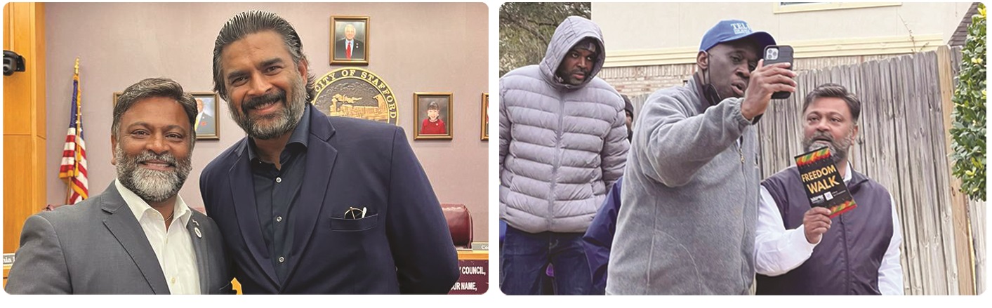 അമേരിക്കന് രാഷ്ട്രീയത്തില് തുടക്കം കുറിക്കുവാന് റോബിന് ഇലക്കാട്ടിന് സാധിച്ചുവെങ്കിലും അതിന് മാതൃകയായ ഒരു വ്യക്തിത്വം മലയാളികള്ക്ക് എക്കാലവും പ്രിയപ്പെട്ട ശ്രീ. കെ. ആര്. നാരായണന് ആണ്. കോട്ടയത്തിന്റെ മണ്ണില്നിന്ന് വിവിധ രാജ്യങ്ങളില് അംബാസഡറായി പ്രവര്ത്തിച്ച് ഇന്ത്യന് രാഷ്ട്രീയത്തിലേക്ക് വന്ന് മന്ത്രിയായി, ഒടുവില് ഇന്ത്യയുടെ രാഷ്ട്രപതിയായി മാറിയ ജീവിതം ഓരോ മലയാളികളും ഓര്മ്മിക്കണം. ഏത് നാട്ടിലായിക്കോട്ടെ, എവിടെ നിന്നു വന്നു എന്നുള്ളതല്ല, നമുക്ക് എന്തെല്ലാം ഇനിയും ചെയ്യാനുണ്ട് എന്ന് ചിന്തിക്കുക. മുന്പേ പോയവരുടെ പുസ്തകത്താളുകളുടെ ബാക്കിയായി നമുക്കും ചരിത്രം എഴുതേണ്ടതുണ്ട്. അതിനായി ശ്രമിക്കാം. പുതുവഴികള് നമ്മള് തന്നെ തുറക്കേണ്ടതാണെന്നും അദ്ദേഹം പറയുന്നു.