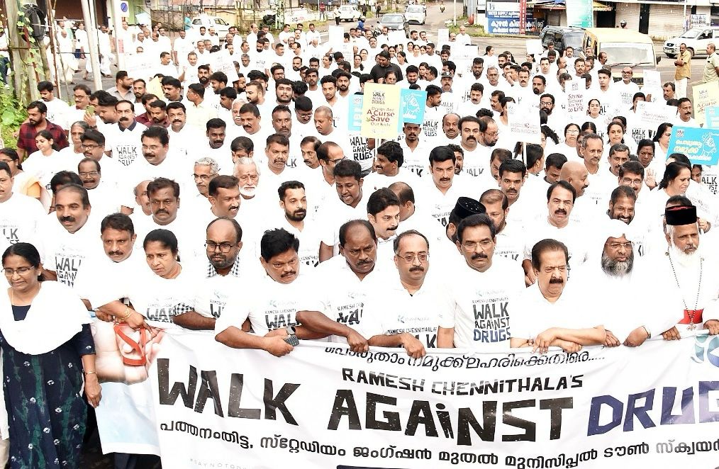 മുൻ പ്രതിപക്ഷ നേതാവ് രമേശ് ചെന്നിത്തലയുടെ നേതൃത്വത്തിൽ പ്രൗഡ് കേരളായുടെ ആഭിമുഖ്യത്തിൽ പത്തനംതിട്ടയിൽ നടന്ന Walk Against Drugs പരിപാടി പത്തനംതിട്ട സ്റ്റേഡിയം ജംഗ്ഷനിൽ നിന്നും ആരംഭിച്ച് സെൻട്രൽ ജംഗ്ഷനിൽ സമാപിച്ചു. സ്റ്റേഡിയം ജംഗ്ഷനിൽ നിന്നും ആരംഭിച്ച് സെൻട്രൽ ജംഗ്ഷനിൽ സമാപിച്ച പരിപാടി യിൽ നൂറു കണക്കിന് ആളുകൾ പങ്കെടുത്തു .സമാപന സമ്മേള്ളനത്തിൽ മലങ്കര മാർത്തോമ്മാ സഭയുടെ സഫ്രഗൻ മെത്രാപ്പോലീത്താ അഭിവന്ദ്യ Dr.ജോസഫ് മാർ ബർന്നബാസ് മെത്രാപ്പോലീത്ത ,മലങ്കര ഓർത്തോഡോക്സ് സഭയിലെ ഡോ.എബ്രഹാം മാർ സെറാഫിം മെത്രാ പ്പോലീത്ത , അബ്ദുൽ ഷുക്കൂർ മൗലവി അൽഖാസിമി,റവ.ഫാ ജോൺസൺ കല്ലീട്ടിൽ കോർ എപ്പിസ്കോപ്പാ ,ശ്രീ രമേശ് ചെന്നിത്തല , ആൻ്റോ ആൻ്റണി എം പി അഡ്വ.വർഗീസ് മാമ്മൻ ജനപ്രതിനിധികൾ സാമുദായിക സാംസ്കാരിക നേതാക്കൾ തുടങ്ങിയവർ പങ്കെടുത്തു .