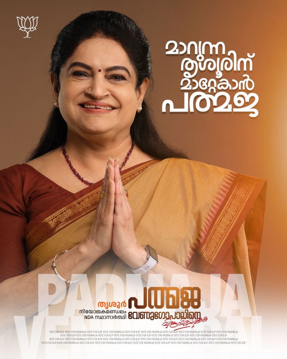 തൃശൂർ നിയമസഭാ നിയോജകമണ്ഡലത്തിൽ എൻ ഡി എയുടെ സ്ഥാനാർഥി ആയി താമര ചിഹ്നത്തിൽ ഞാൻ ഇക്കുറി ജനവിധി തേടുകയാണ് . എനിയ്ക്കും നിങ്ങൾക്കും നമ്മളെ തമ്മിൽ പരിചയപ്പെടുത്തേണ്ടതില്ല . നിങ്ങൾക്ക് മുന്നിൽ എന്നും ഉണ്ടായിരുന്നവളാണ് ഞാൻ . ഇനി അങ്ങോട്ടും ഒപ്പം ഉണ്ടാകും എന്ന ഉറപ്പാണ് ഈ ദിവസം എനിയ്ക്ക് നൽകാനുള്ളത് . നിങ്ങളുടെ ഓരോരുത്തരുടെയും പ്രാർഥനയും പിന്തുണയും ഉണ്ടാകുമെന്ന പ്രതീക്ഷയോടെ